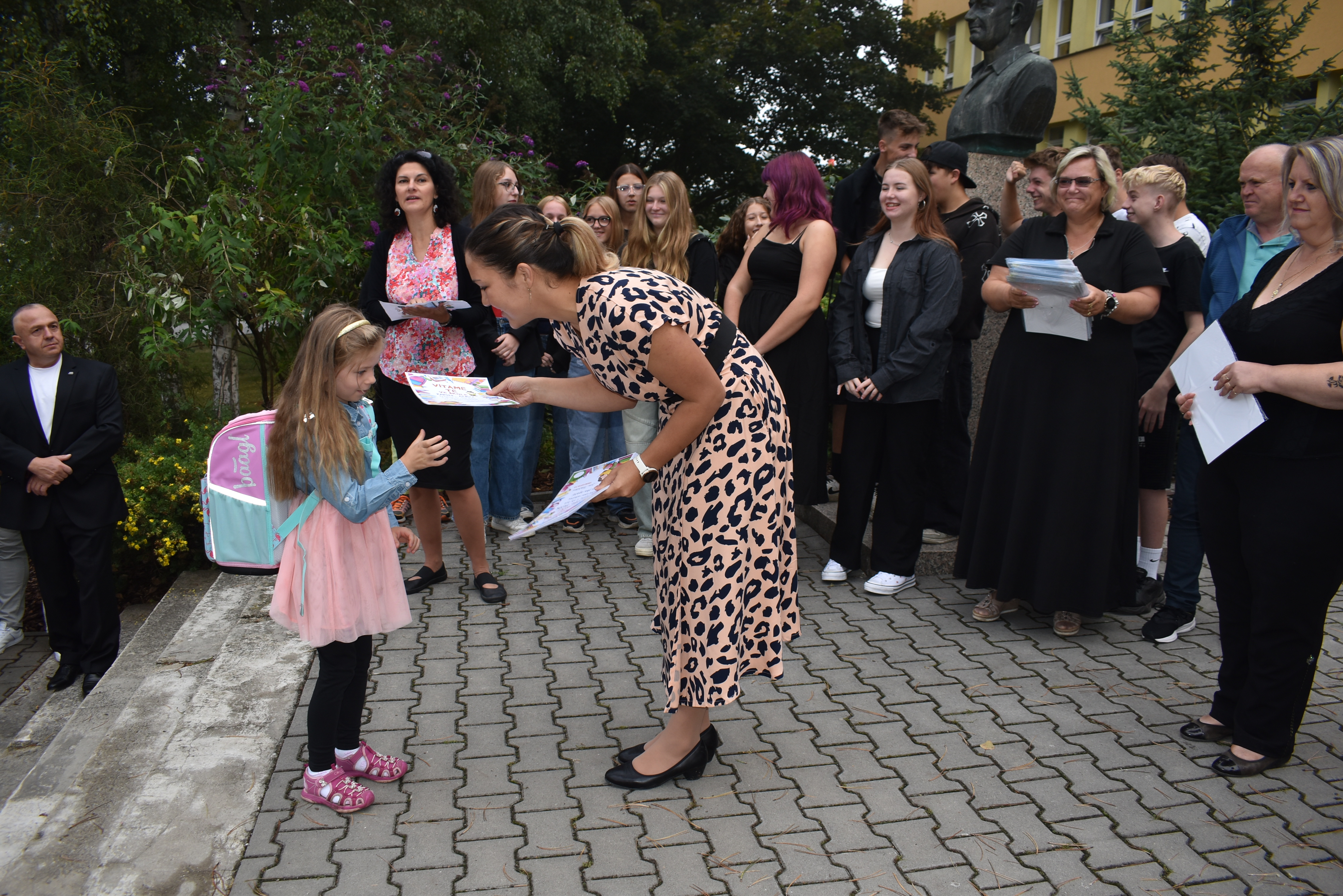 Prvního září proběhlo slavnostní uvítání prvňáčků do školních lavic. Navzájem se také představili se svým deváťákem-patronem. Tím se odstartoval školní rok spolupráce a kamarádství.