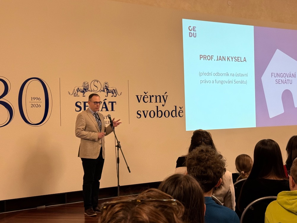 Program začal hromadným zahájením s ostatními parlamenty z různých krajů. Vyslechli jsme přednášku největšího experta na ústavní právo, pana Kysely. Po té jsme se rozdělili do jednotlivých koutů, kde jsme pracovali se svým koordinátorem z CEDU Petrem a přišla za námi paní senátorka Vítková, která se nám téměř hodinu věnovala. Přiblížila nám svoji práci v Senátu a měli jsme na ni připravené dotazy, které nás zajímaly.