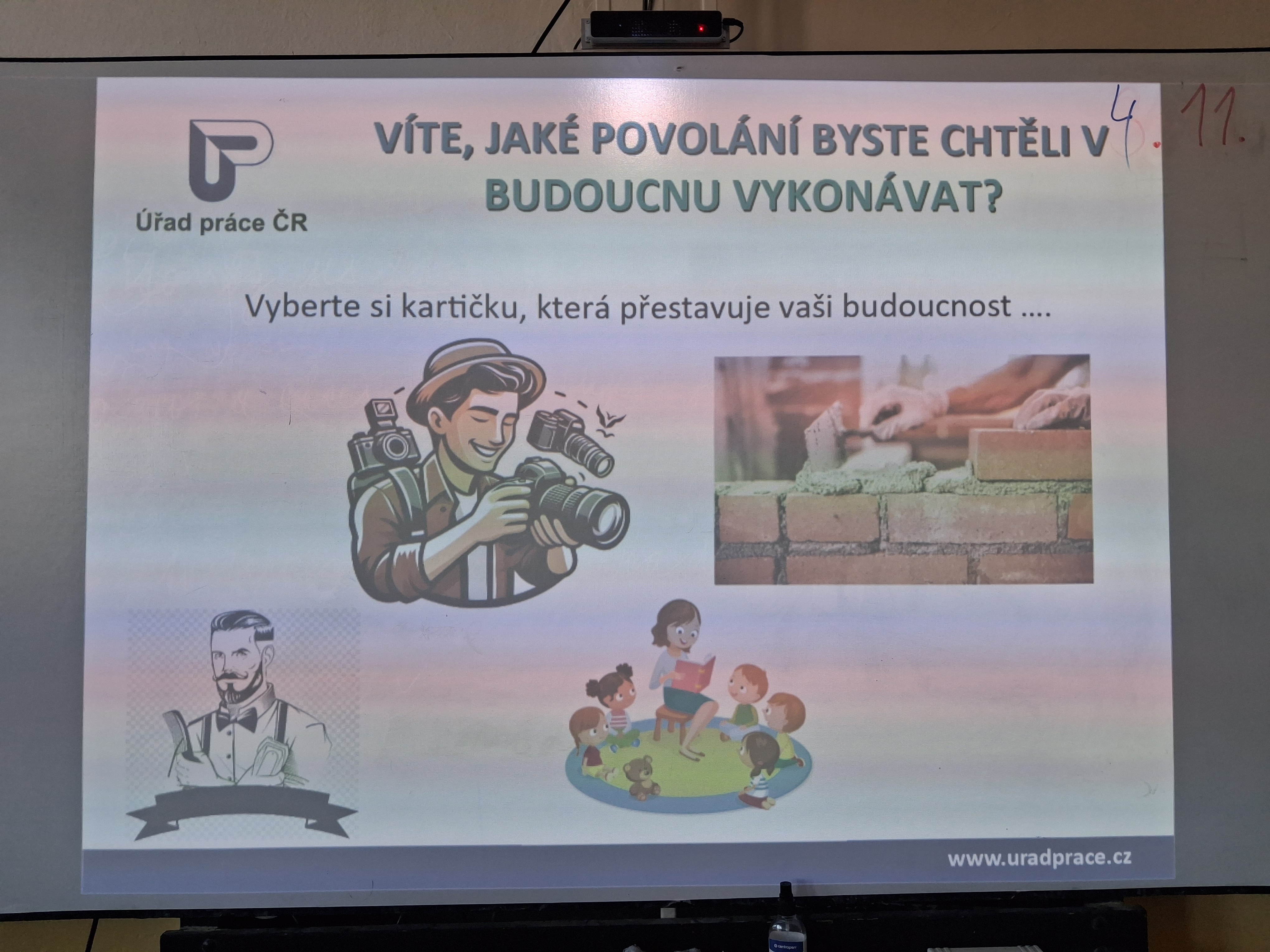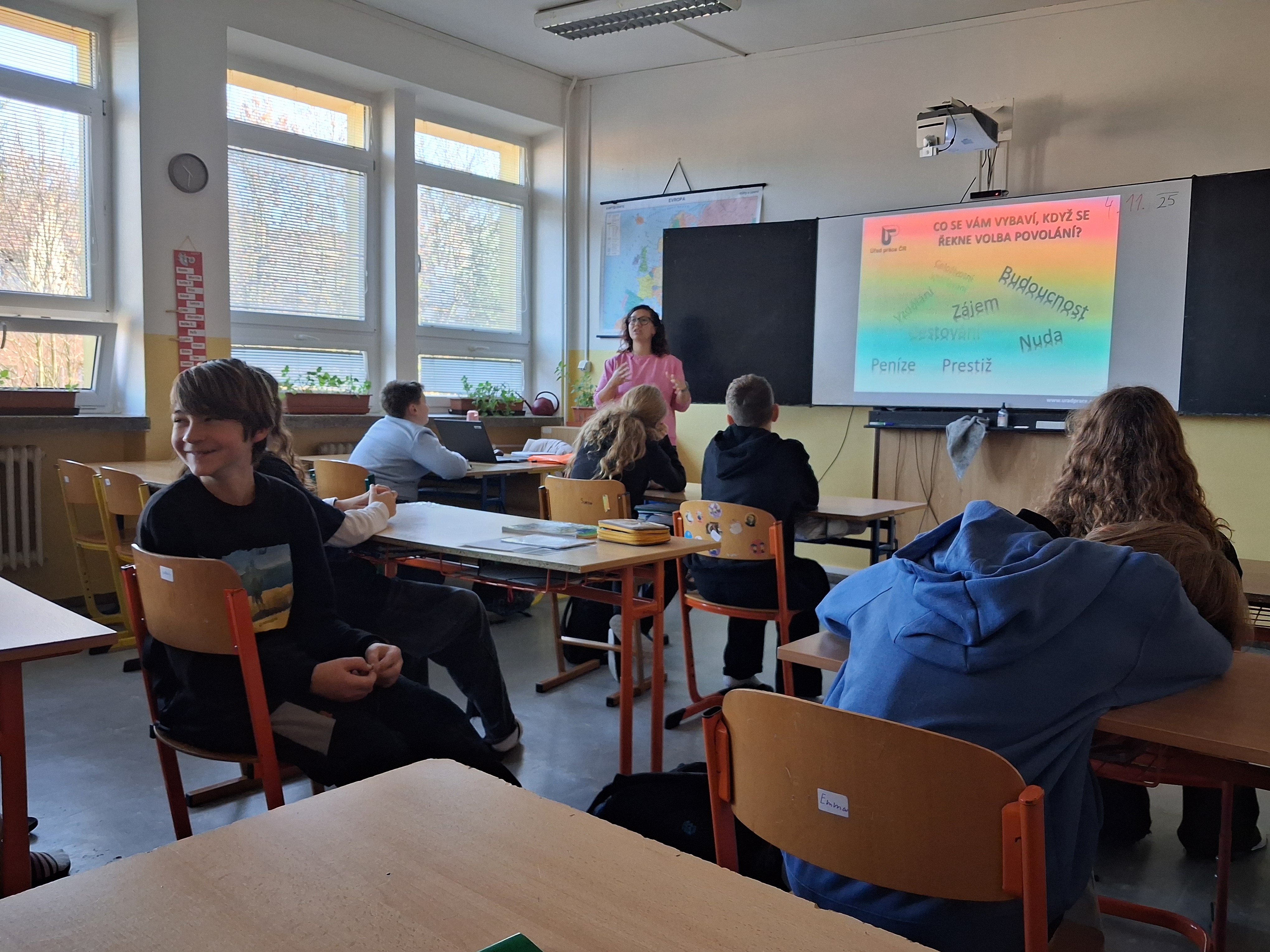 Žáky 8. ročníku ve škole navštívila paní Daňková z IPS ÚP v Blansku, která s dětmi besedovala na téma volba povolání. Jaké mám možnosti dalšího studia po základní škole? Jaké jsou profese budoucnosti? Přijdeme kvůli AI o některé pracovní pozice? Kolik povolání je potřeba k tomu, abychom si postavili dům? Nejen na tyto otázky hledali žáci společně s pí Daňkovou odpověď. Během besedy mohli začít žáci 8. ročníku pomalu přemýšlet o své profesní dráze, o svých očekáváních a představách.