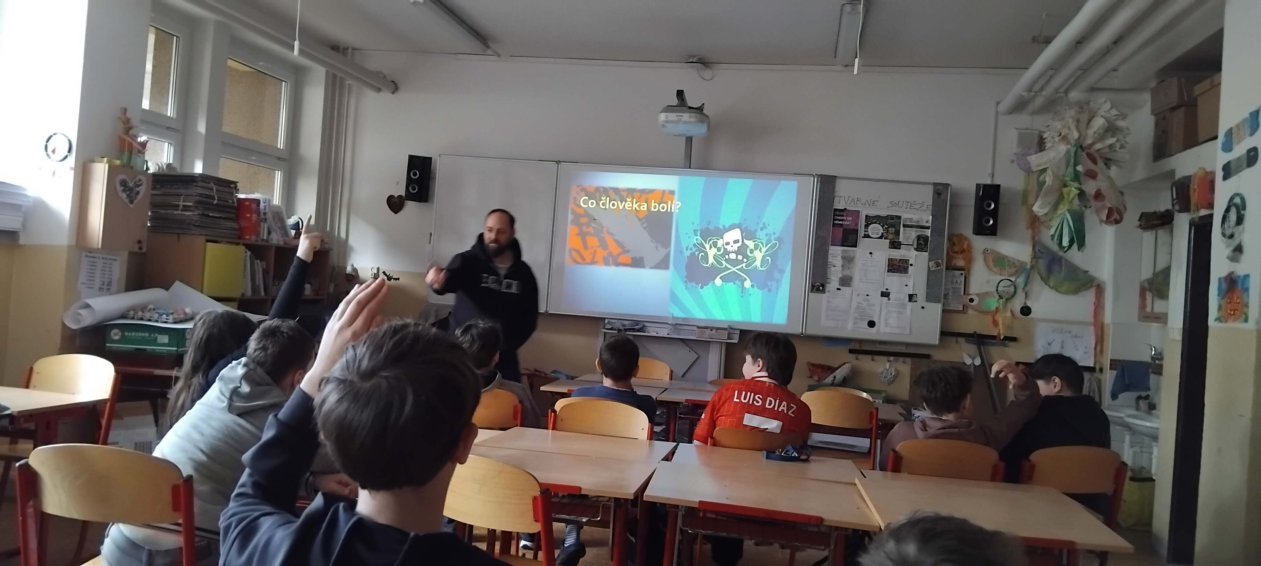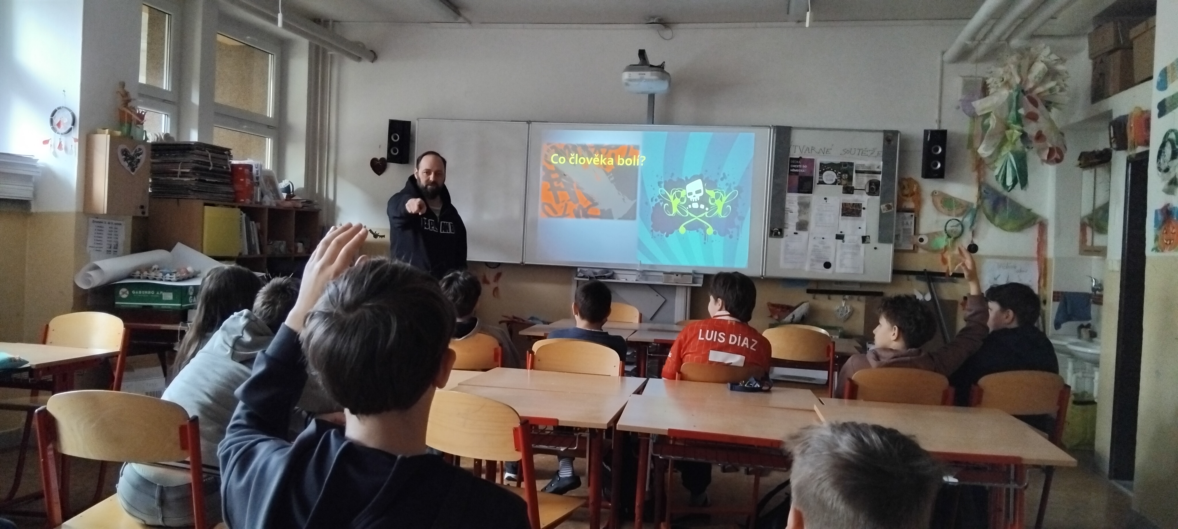 Lektor diskutuje s dětmi, co všechno je může bolet, a ujasňují si pojmy: pomluva, ponižování, vydírání, ….